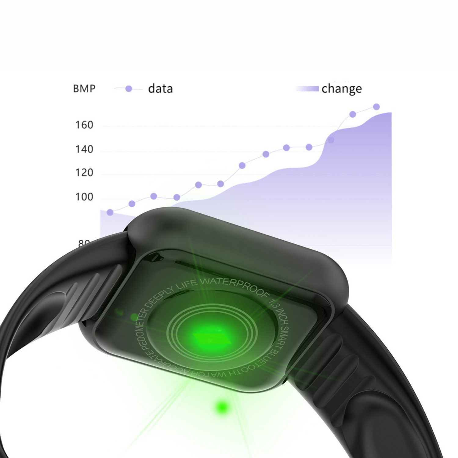 The Med-Watch measures blood pressure using an advanced optical sensor that detects blood flow beneath the skin. It employs a technique called photoplethysmography (PPG), which involves emitting light into the skin and measuring the changes in light absorption to calculate blood pressure. Med-Watch provides a convenient, accurate and non-invasive way to track your blood pressure throughout the day.